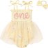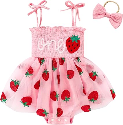 Design: Features a sleeveless design with multi-layered tulle and convenient snap closures at the legs for easy diaper changes. The adorable “ONE” embroidered detail makes this the perfect princess-style outfit for celebrating her special first birthday milestone.